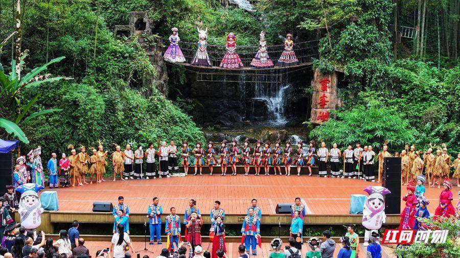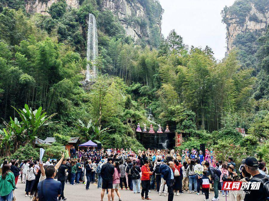 红网时刻新闻10月3日张家界讯(记者 覃宵 通讯员 邓道理)10月3日,国庆长假进入第三天,张家界各大景区持续迎来旅游热潮。当天,张家界宝峰湖景区山水舞台欢歌笑语,当地部门精心组织近百名民间艺人,为海内外游客献上了一场融合本土民族特色的非遗展演,让游客在欣赏湖光山色的同时,沉浸式感受张家界非遗魅力。展演现场,茅古斯舞的原始粗犷、打溜子的节奏明快、土家武术的刚劲有力、三棒鼓的灵活巧妙以及山歌串唱的悠扬婉转轮番上演,精彩的表演引得现场游客阵阵掌声,不少游客拿出手机记录下这些特色文化瞬间,现场俨然成为一场“山水+非遗”的文化盛宴。浙江七旬游客童先生点赞道:“张家界奇山异水让人震撼,宝峰湖文化展演体现了热情好客,这趟旅行太值了!”据了解,随着国庆旅游热度攀升,张家界国家森林公园门票预约量10月3日至4日已达最高限量。在此情况下,越来越多游客选择错峰出行,宝峰湖、黄龙洞、大峡谷等周边景区成为热门选择,既避开了核心景区的人流高峰,又能体验不同类型的旅游资源,错峰游逐渐成为国庆假期张家界旅游市场的新趋势。举报/反馈